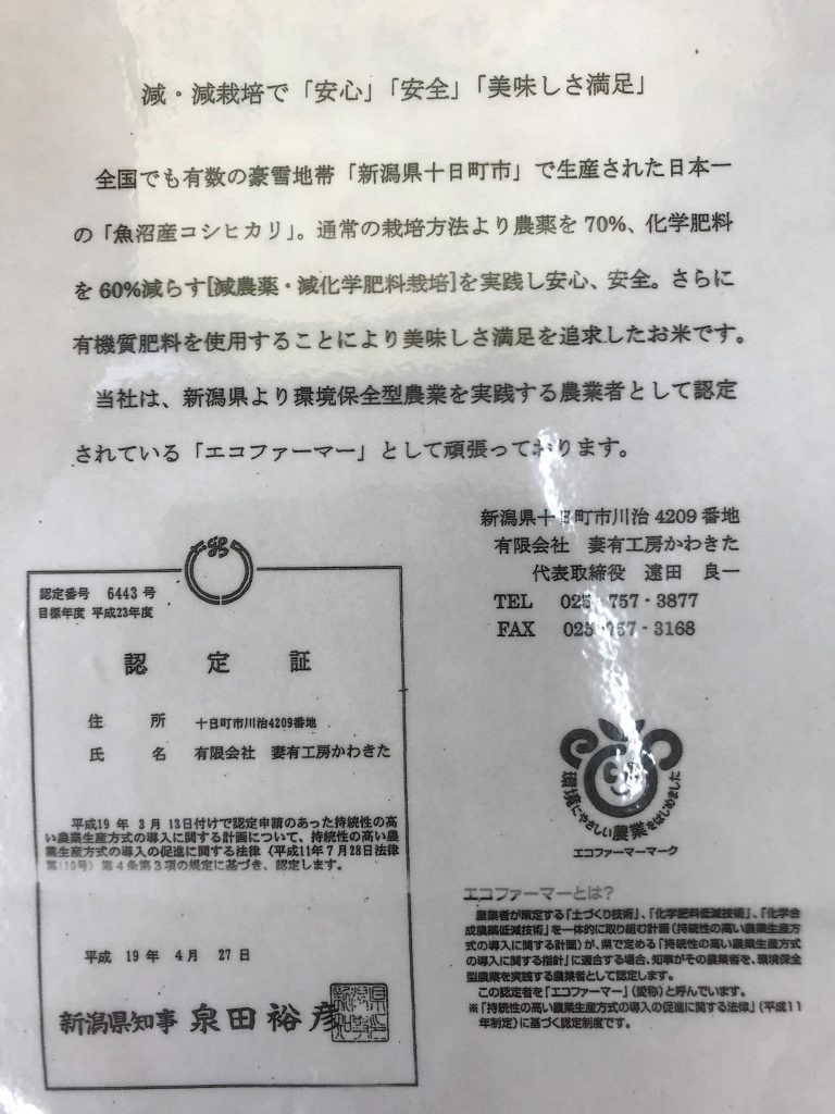 《特Aのお米です。》甘み、粘り、硬さ、非常にバランスのとれたおいしさです。日本の最高峰の人気の商品。当店の魚沼産こしひかりは、新潟県知事より認定を受けたエコファーマーかわきたグループのお米を使用しております。通常の栽培方法より70%、化学肥料を60%減らす減農薬・減化学肥料栽培を実践し安心、安全です。さらに、有機質肥料を使用することにより美味しさと満足を追求したお米です。
